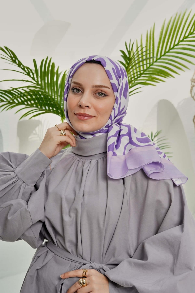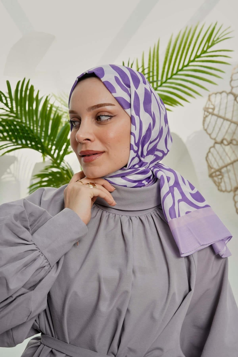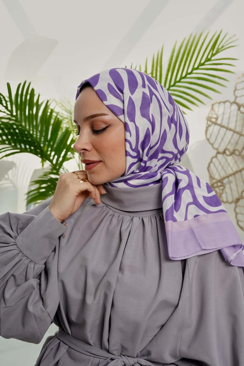Soyut Desen Mor Soft Pamuk Şal;Ölçü:75x185;Kumaş:%50 Pamuk %50 Polyester;Dört mevsim kullanıma uygundur.;Kolayca şekil alır, önü tok ve dik durur.; Solmaya ve kırışmaya dayanıklıdır.; İç göstermez,kayma yapmaz.; Ütü gerektirmez.;Kullanılan ışıklardan dolayı renk farklılıkları olabilir.