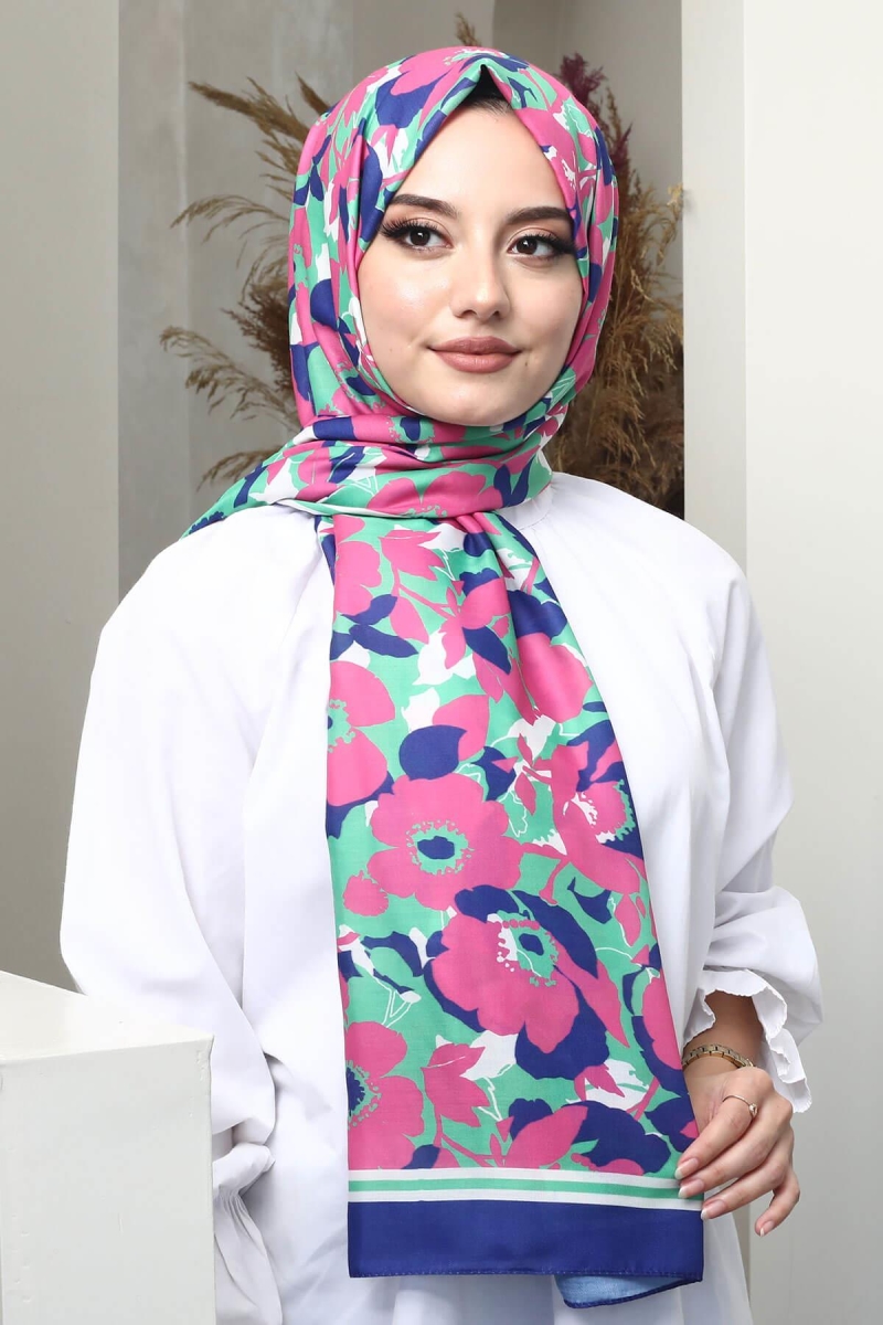 Çiçek Desen Mor Soft Pamuk Şal;Ölçü:75x185;Kumaş:%50 Pamuk %50 Polyester;Dört mevsim kullanıma uygundur.;Kolayca şekil alır, önü tok ve dik durur.; Solmaya ve kırışmaya dayanıklıdır.; İç göstermez,kayma yapmaz.; Ütü gerektirmez.;Kullanılan ışıklardan dolayı renk farklılıkları olabilir.