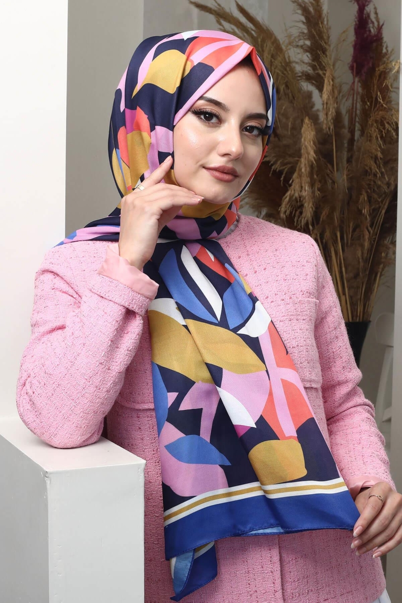 Yaprak Desen Lacivert Soft Pamuk Şal;Ölçü:75x185;Kumaş:%50 Pamuk %50 Polyester;Dört mevsim kullanıma uygundur.;Kolayca şekil alır, önü tok ve dik durur.; Solmaya ve kırışmaya dayanıklıdır.; İç göstermez,kayma yapmaz.; Ütü gerektirmez.;Kullanılan ışıklardan dolayı renk farklılıkları olabilir.