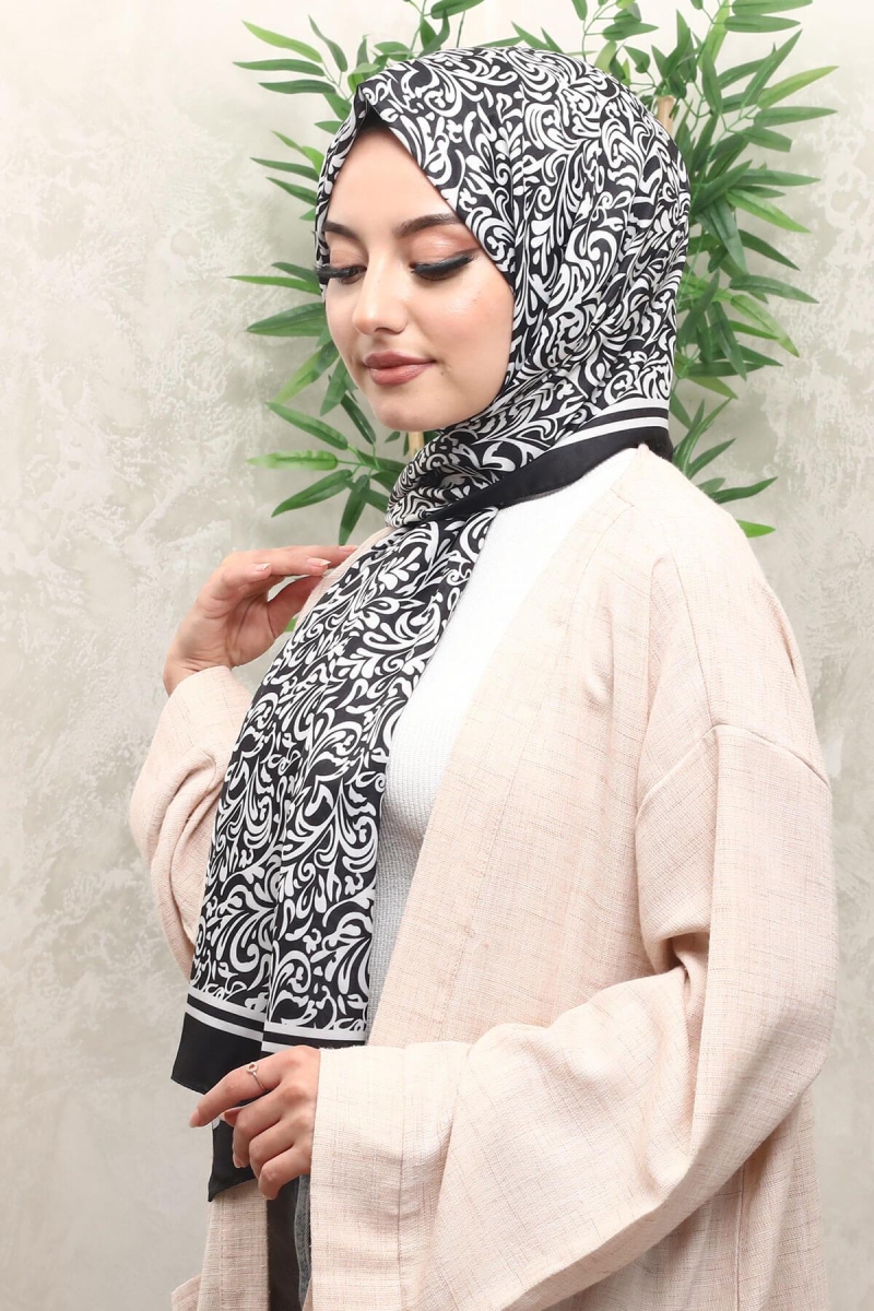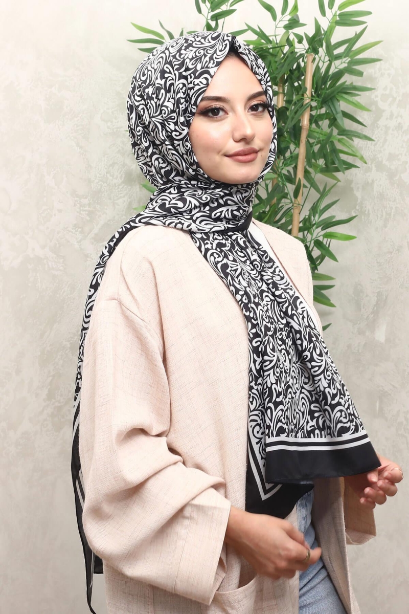 Damaks Desen Siyah Soft Pamuk Şal;Ölçü:75x185;Kumaş:%50 Pamuk %50 Polyester;Dört mevsim kullanıma uygundur.;Kolayca şekil alır, önü tok ve dik durur.; Solmaya ve kırışmaya dayanıklıdır.; İç göstermez,kayma yapmaz.; Ütü gerektirmez.;Kullanılan ışıklardan dolayı renk farklılıkları olabilir.