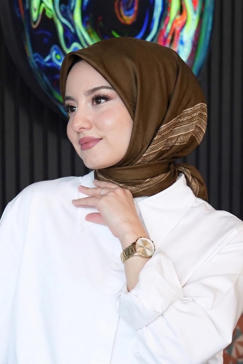 Etnik Bordür Desen Acı Kahve Pamuk Eşarp;Ölçü:95x95;Kumaş:%50 Pamuk %50 Polyester;Dört mevsim kullanıma uygundur.;Kolayca şekil alır, önü tok ve dik durur.; Solmaya ve kırışmaya dayanıklıdır.; İç göstermez,kayma yapmaz.; Ütü gerektirmez.;Kullanılan ışıklardan dolayı renk farklılıkları olabilir.
