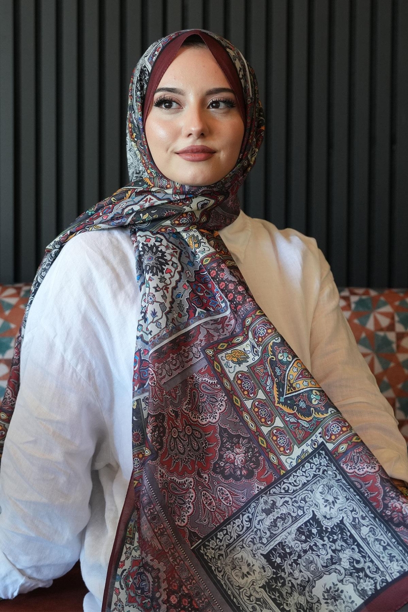Etnik Desen Bordo Soft Pamuk Şal;Ölçü:75x185;Kumaş:%50 Pamuk %50 Polyester;Dört mevsim kullanıma uygundur.;Kolayca şekil alır, önü tok ve dik durur.; Solmaya ve kırışmaya dayanıklıdır.; İç göstermez,kayma yapmaz.; Ütü gerektirmez.;Kullanılan ışıklardan dolayı renk farklılıkları olabilir.