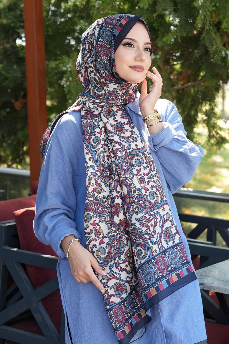 Afvente Paisley Desen Füme Soft Pamuk Şal