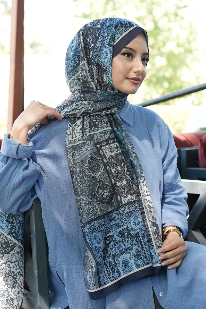 Etnik Desen Lacivert Soft Pamuk Şal;Ölçü:75x185;Kumaş:%50 Pamuk %50 Polyester;Dört mevsim kullanıma uygundur.;Kolayca şekil alır, önü tok ve dik durur.; Solmaya ve kırışmaya dayanıklıdır.; İç göstermez,kayma yapmaz.; Ütü gerektirmez.;Kullanılan ışıklardan dolayı renk farklılıkları olabilir.