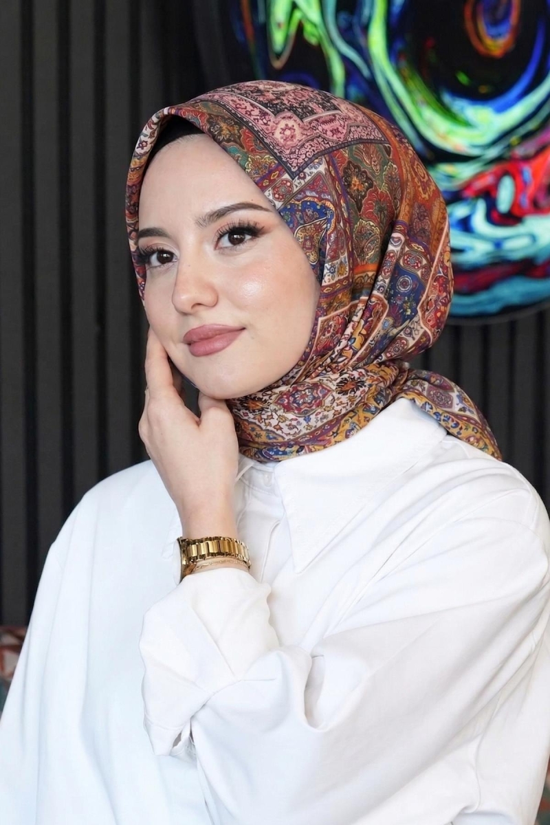 Etnik Desen Taba Soft Pamuk Eşarp;Ölçü:95x95;Kumaş:%50 Pamuk %50 Polyester;Dört mevsim kullanıma uygundur.;Kolayca şekil alır, önü tok ve dik durur.; Solmaya ve kırışmaya dayanıklıdır.; İç göstermez,kayma yapmaz.; Ütü gerektirmez.;Kullanılan ışıklardan dolayı renk farklılıkları olabilir.