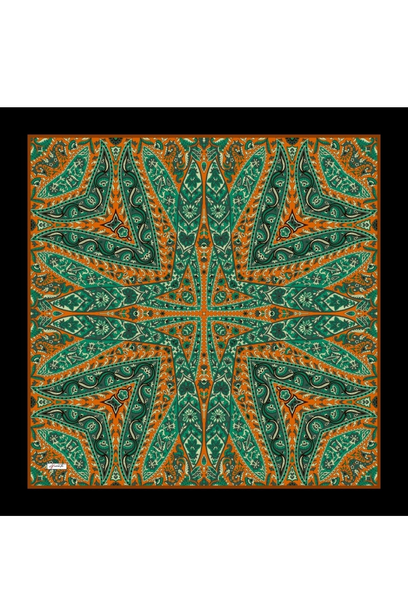 Etnik Yıldız Desen Zümrüt Pamuk Eşarp;Ölçü:95x95;Kumaş:%50 Pamuk %50 Polyester;Dört mevsim kullanıma uygundur.;Kolayca şekil alır, önü tok ve dik durur.; Solmaya ve kırışmaya dayanıklıdır.; İç göstermez,kayma yapmaz.; Ütü gerektirmez.;Kullanılan ışıklardan dolayı renk farklılıkları olabilir.;Dört kenarı püsküllüdür.