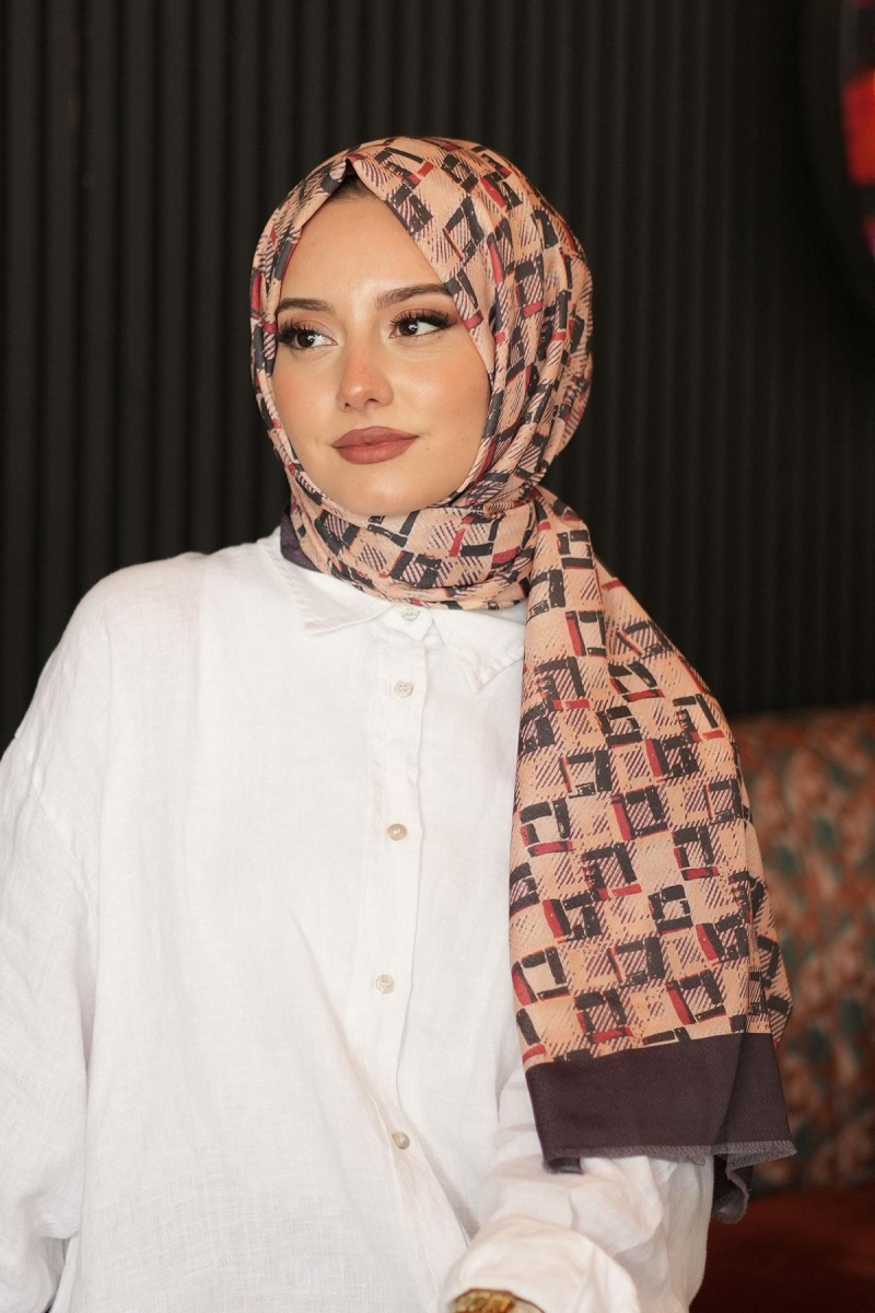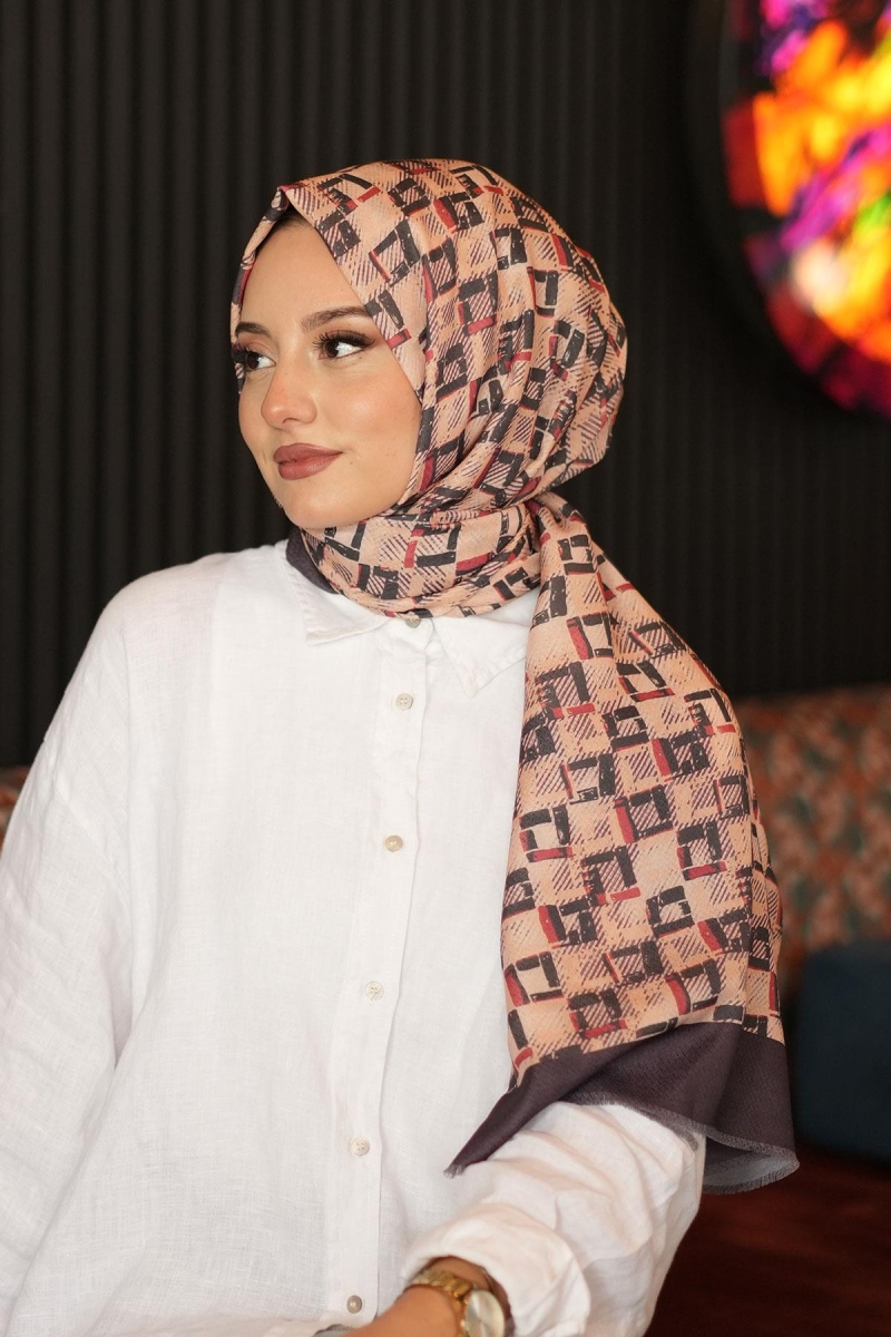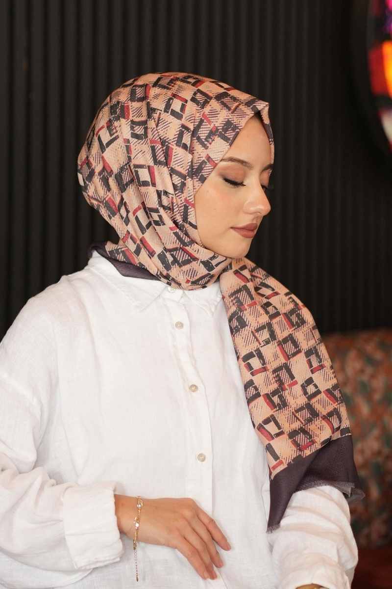 Geometrik Kare Desen Acı Kahve Pamuk Şal;Ölçü:75x185;Kumaş:%50 Pamuk %50 Polyester;Dört mevsim kullanıma uygundur.;Kolayca şekil alır, önü tok ve dik durur.; Solmaya ve kırışmaya dayanıklıdır.; İç göstermez,kayma yapmaz.; Ütü gerektirmez.;Kullanılan ışıklardan dolayı renk farklılıkları olabilir.
