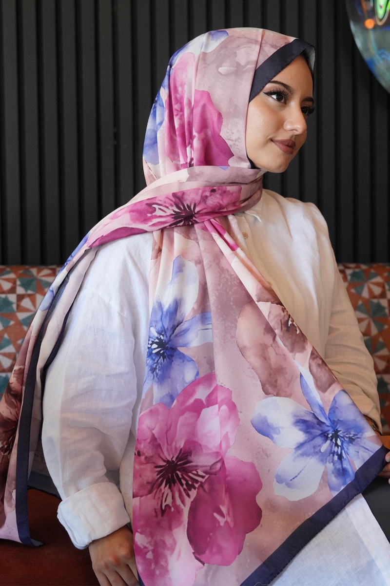 Manolya Çiçek Desen Lacivert Soft Pamuk Şal;Ölçü:75x185;Kumaş:%50 Pamuk %50 Polyester;Dört mevsim kullanıma uygundur.;Kolayca şekil alır, önü tok ve dik durur.; Solmaya ve kırışmaya dayanıklıdır.; İç göstermez,kayma yapmaz.; Ütü gerektirmez.;Kullanılan ışıklardan dolayı renk farklılıkları olabilir.