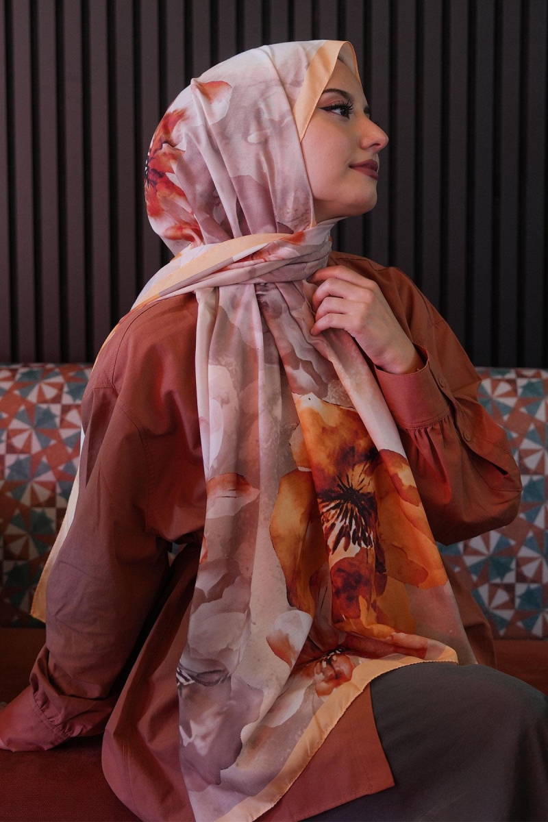 Manolya Çiçek Desen Yavruağzı Soft Pamuk Şal;Ölçü:75x185;Kumaş:%50 Pamuk %50 Polyester;Dört mevsim kullanıma uygundur.;Kolayca şekil alır, önü tok ve dik durur.; Solmaya ve kırışmaya dayanıklıdır.; İç göstermez,kayma yapmaz.; Ütü gerektirmez.;Kullanılan ışıklardan dolayı renk farklılıkları olabilir.