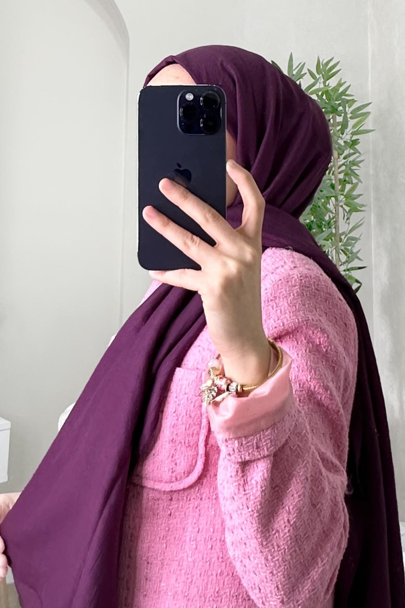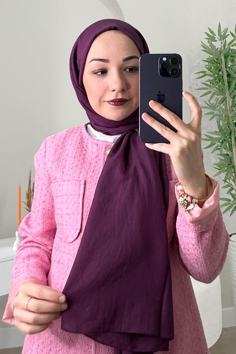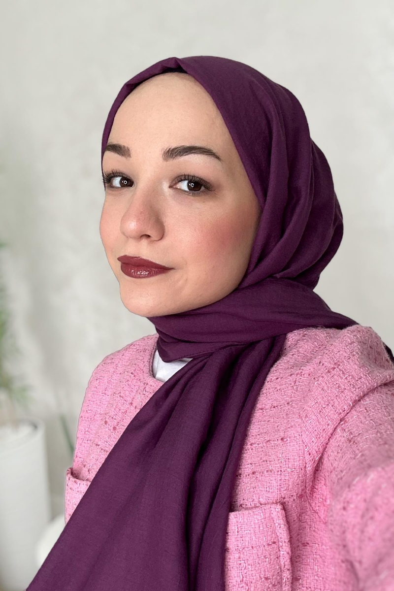 Mor Kraş Pamuk Şal;Ölçü:80x185;Kumaş:%50 Pamuk %50 Polyester;Dört mevsim kullanıma uygundur.;Kolayca şekil alır, önü tok ve dik durur.; Solmaya ve kırışmaya dayanıklıdır.; İç göstermez,kayma yapmaz.; Ütü gerektirmez.;Kullanılan ışıklardan dolayı renk farklılıkları olabilir.