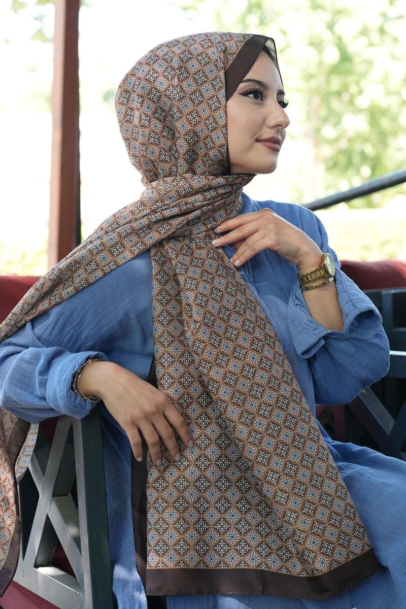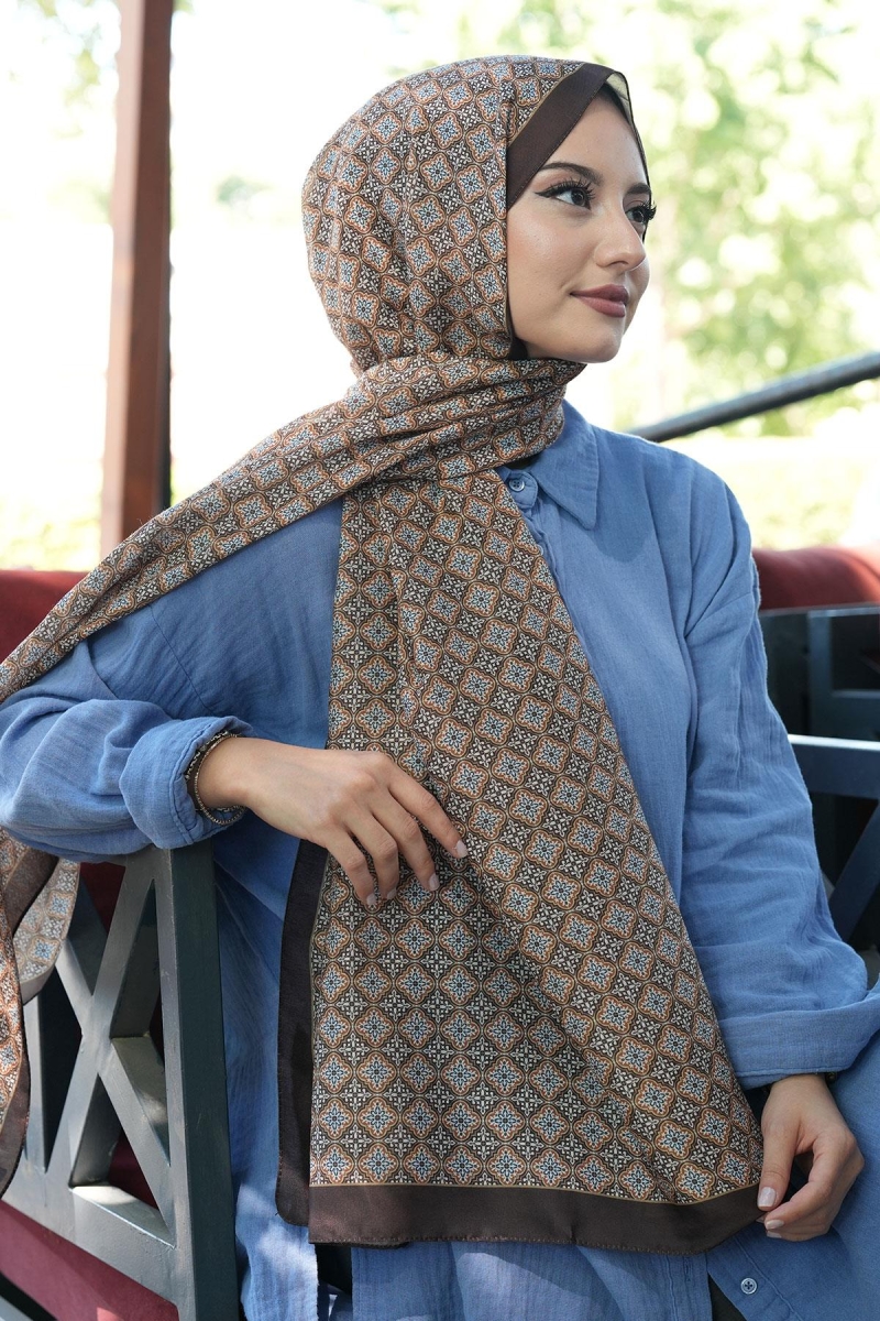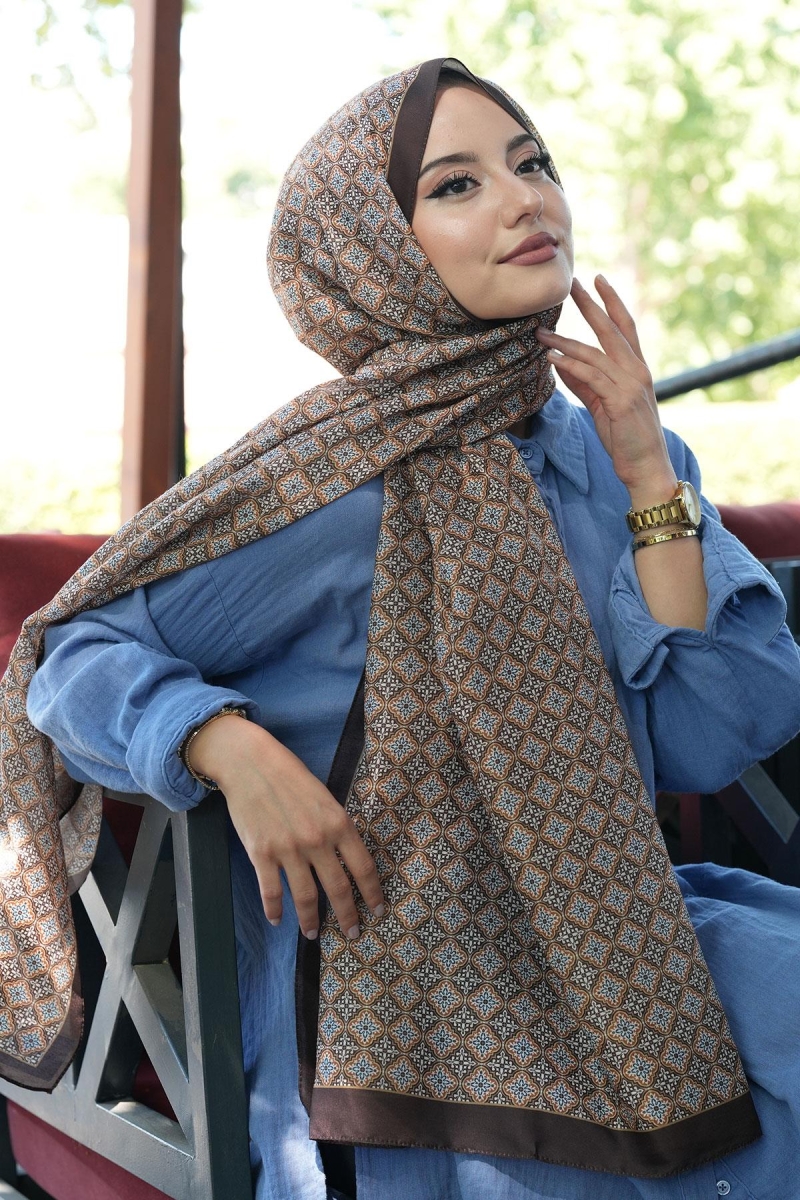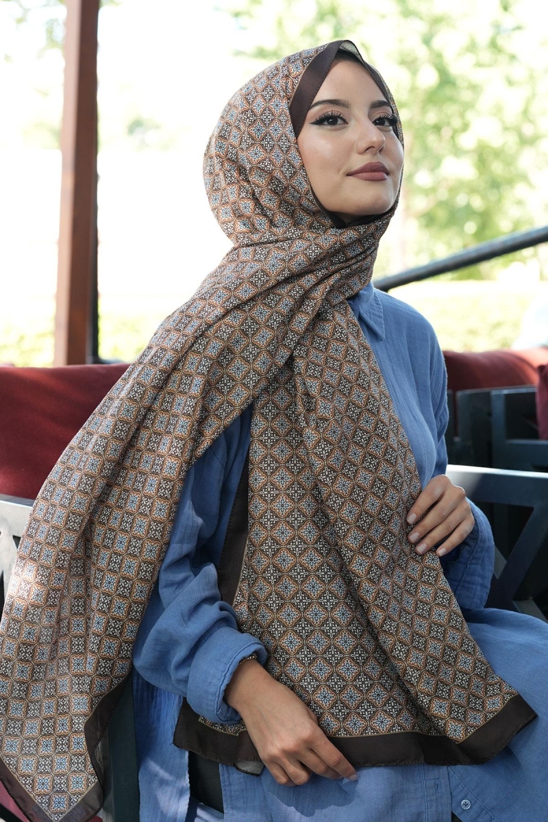 Mozaik Desen Çikolata Soft Pamuk Şal;Ölçü:75x185;Kumaş:%50 Pamuk %50 Polyester;Dört mevsim kullanıma uygundur.;Kolayca şekil alır, önü tok ve dik durur.; Solmaya ve kırışmaya dayanıklıdır.; İç göstermez,kayma yapmaz.; Ütü gerektirmez.;Kullanılan ışıklardan dolayı renk farklılıkları olabilir.