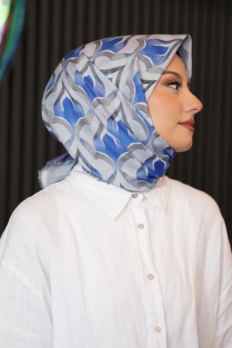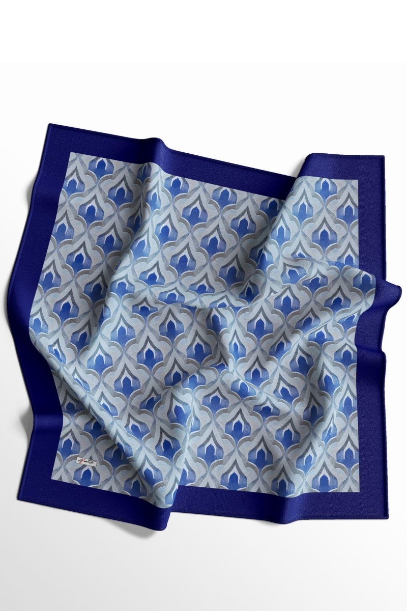Mozaik Desen Lacivert Pamuk Eşarp;Ölçü:95x95;Kumaş:%50 Pamuk %50 Polyester;Dört mevsim kullanıma uygundur.;Kolayca şekil alır, önü tok ve dik durur.; Solmaya ve kırışmaya dayanıklıdır.; İç göstermez,kayma yapmaz.; Ütü gerektirmez.;Kullanılan ışıklardan dolayı renk farklılıkları olabilir.
