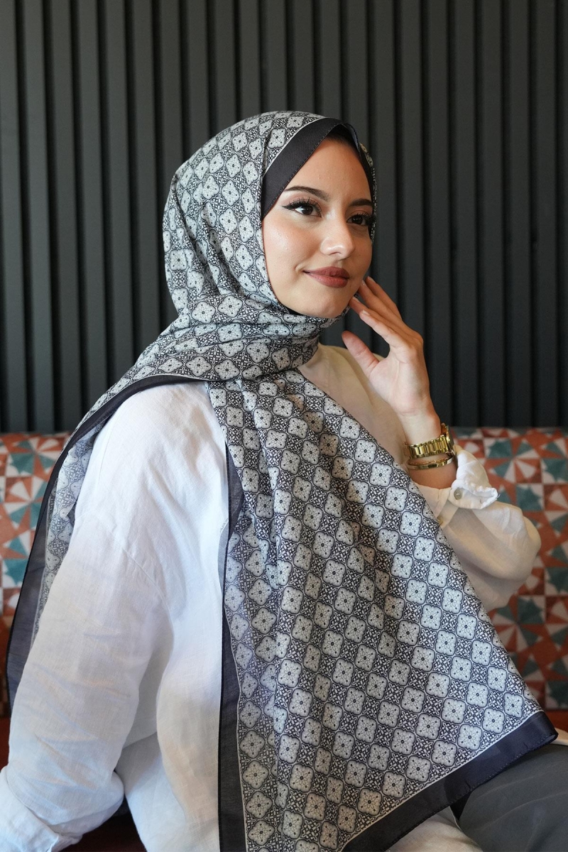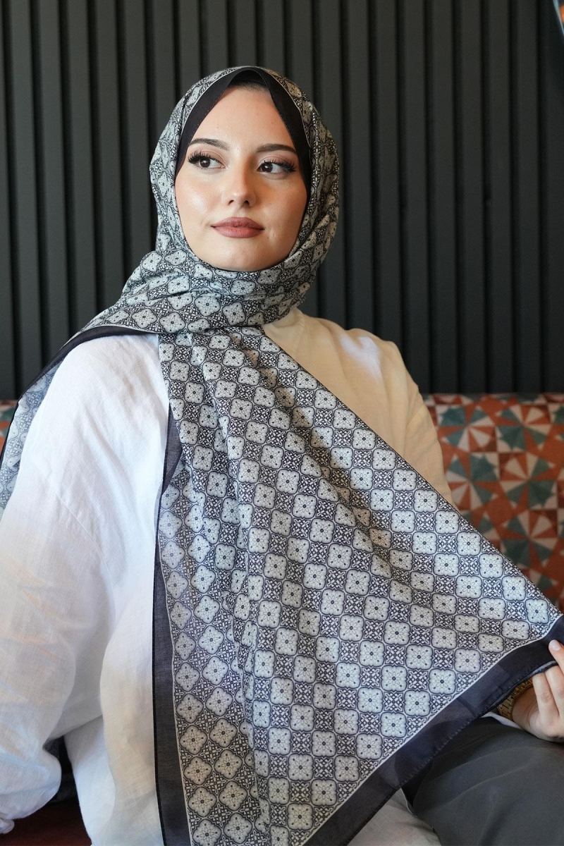 Mozaik Desen Siyah Soft Pamuk Şal;Ölçü:75x185;Kumaş:%50 Pamuk %50 Polyester;Dört mevsim kullanıma uygundur.;Kolayca şekil alır, önü tok ve dik durur.; Solmaya ve kırışmaya dayanıklıdır.; İç göstermez,kayma yapmaz.; Ütü gerektirmez.;Kullanılan ışıklardan dolayı renk farklılıkları olabilir.