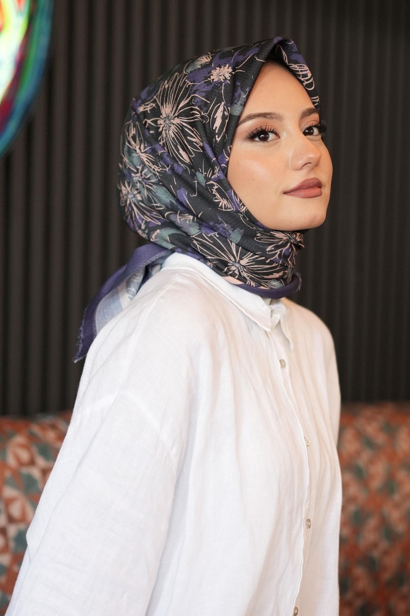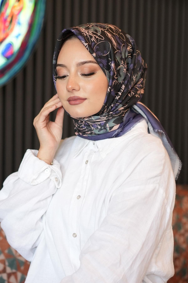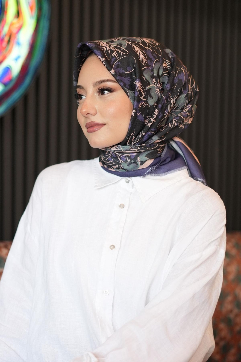 Orkide Desen Mor Pamuk Eşarp;Ölçü:95x95;Kumaş:%50 Pamuk %50 Polyester;Dört mevsim kullanıma uygundur.;Kolayca şekil alır, önü tok ve dik durur.; Solmaya ve kırışmaya dayanıklıdır.; İç göstermez,kayma yapmaz.; Ütü gerektirmez.;Kullanılan ışıklardan dolayı renk farklılıkları olabilir.