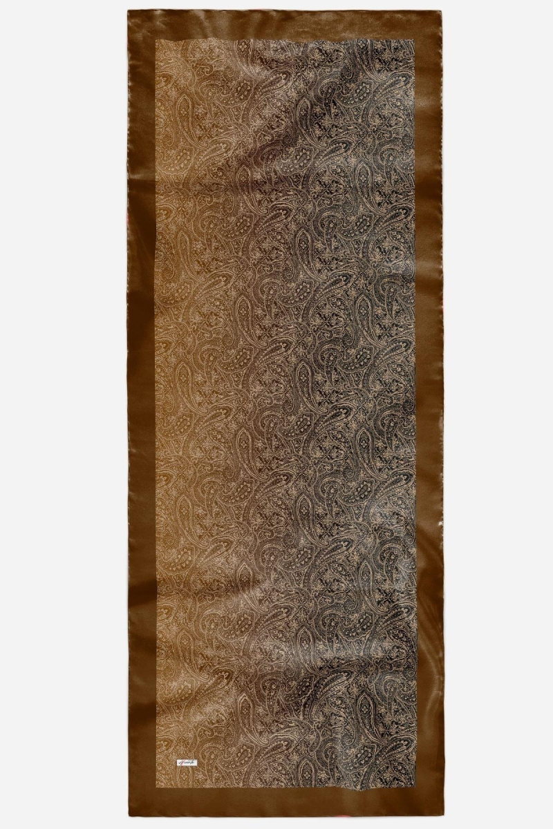 Paisley Desen Bronz Kahve Pamuk Şal;Ölçü:75x185;Kumaş:%50 Pamuk %50 Polyester;Dört mevsim kullanıma uygundur.;Kolayca şekil alır, önü tok ve dik durur.; Solmaya ve kırışmaya dayanıklıdır.; İç göstermez,kayma yapmaz.; Ütü gerektirmez.;Kullanılan ışıklardan dolayı renk farklılıkları olabilir.Dört kenarı italyan dikişlidir.