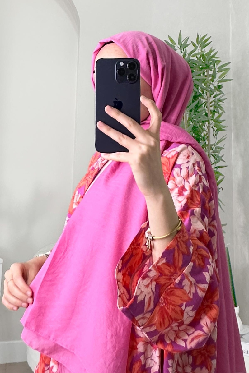 Pembe Kraş Pamuk Şal;Ölçü:80x185;Kumaş:%50 Pamuk %50 Polyester;Dört mevsim kullanıma uygundur.;Kolayca şekil alır, önü tok ve dik durur.; Solmaya ve kırışmaya dayanıklıdır.; İç göstermez,kayma yapmaz.; Ütü gerektirmez.;Kullanılan ışıklardan dolayı renk farklılıkları olabilir.