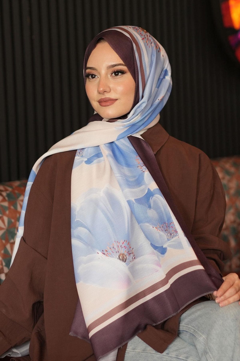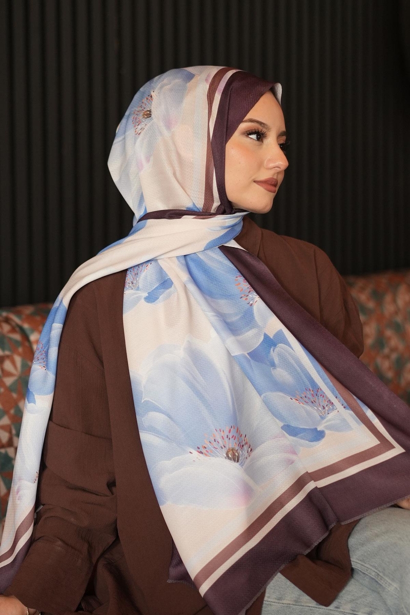 Şakayık Desen Mavi Pamuk Şal;Ölçü:75x185;Kumaş:%50 Pamuk %50 Polyester;Dört mevsim kullanıma uygundur.;Kolayca şekil alır, önü tok ve dik durur.; Solmaya ve kırışmaya dayanıklıdır.; İç göstermez,kayma yapmaz.; Ütü gerektirmez.;Kullanılan ışıklardan dolayı renk farklılıkları olabilir.