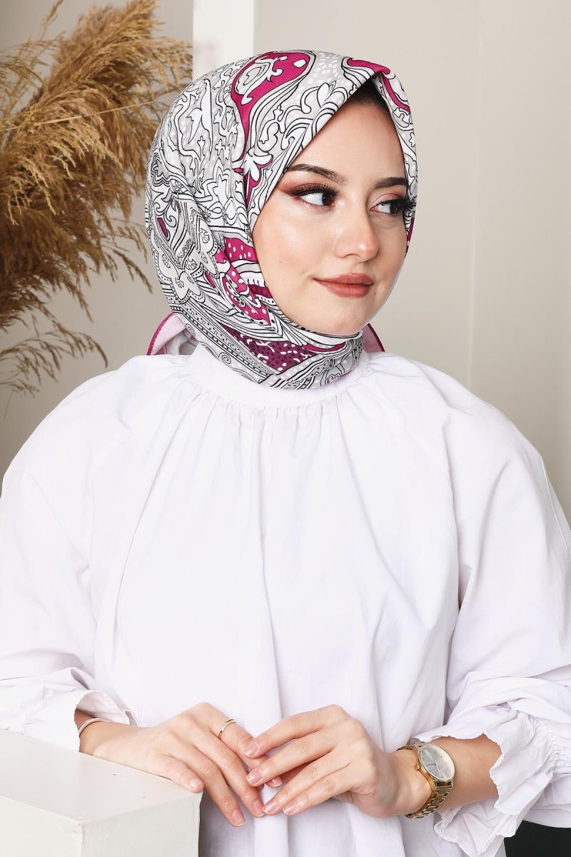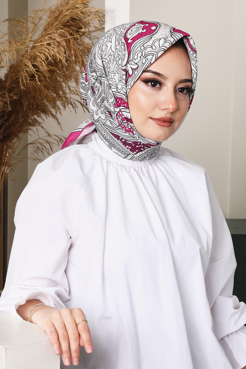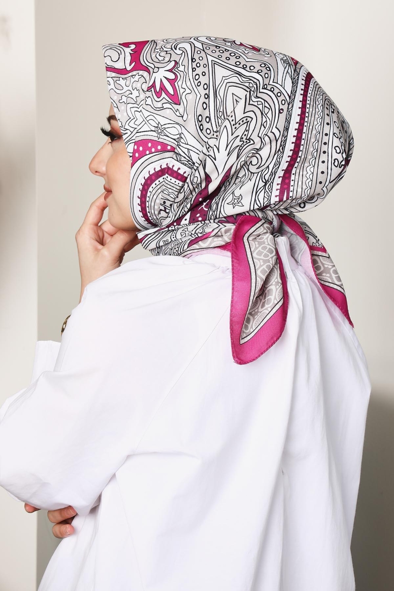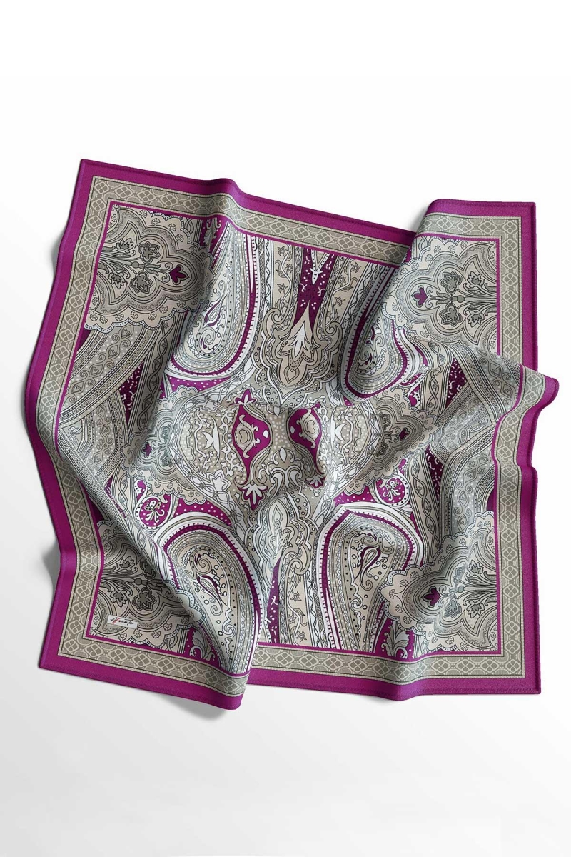 Soft Etro Eşarp Fuşya;Ölçü:95x95;Kumaş:%50 Pamuk %50 Polyester;Dört mevsim kullanıma uygundur.;Kolayca şekil alır, önü tok ve dik durur.; Solmaya ve kırışmaya dayanıklıdır.; İç göstermez,kayma yapmaz.; Ütü gerektirmez.;Kullanılan ışıklardan dolayı renk farklılıkları olabilir.