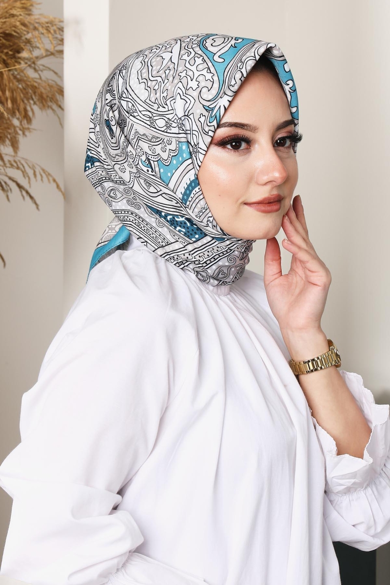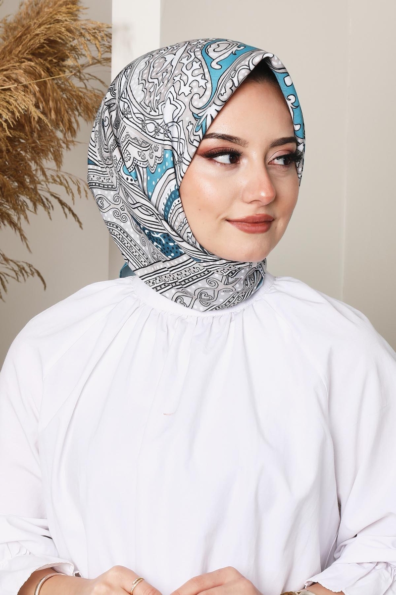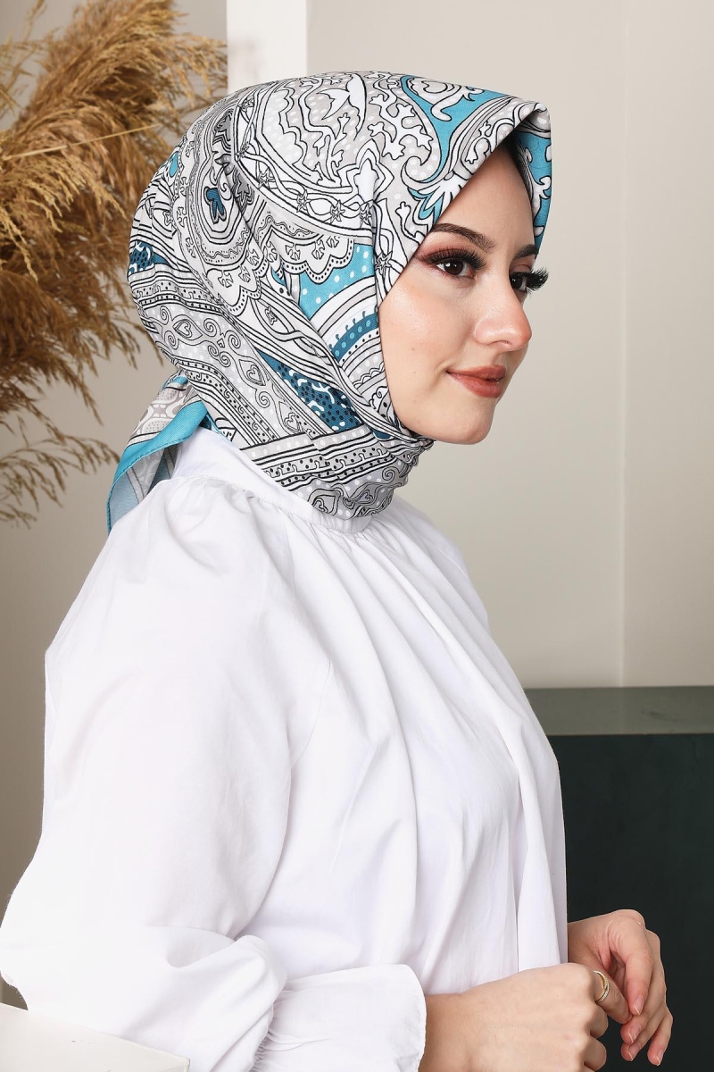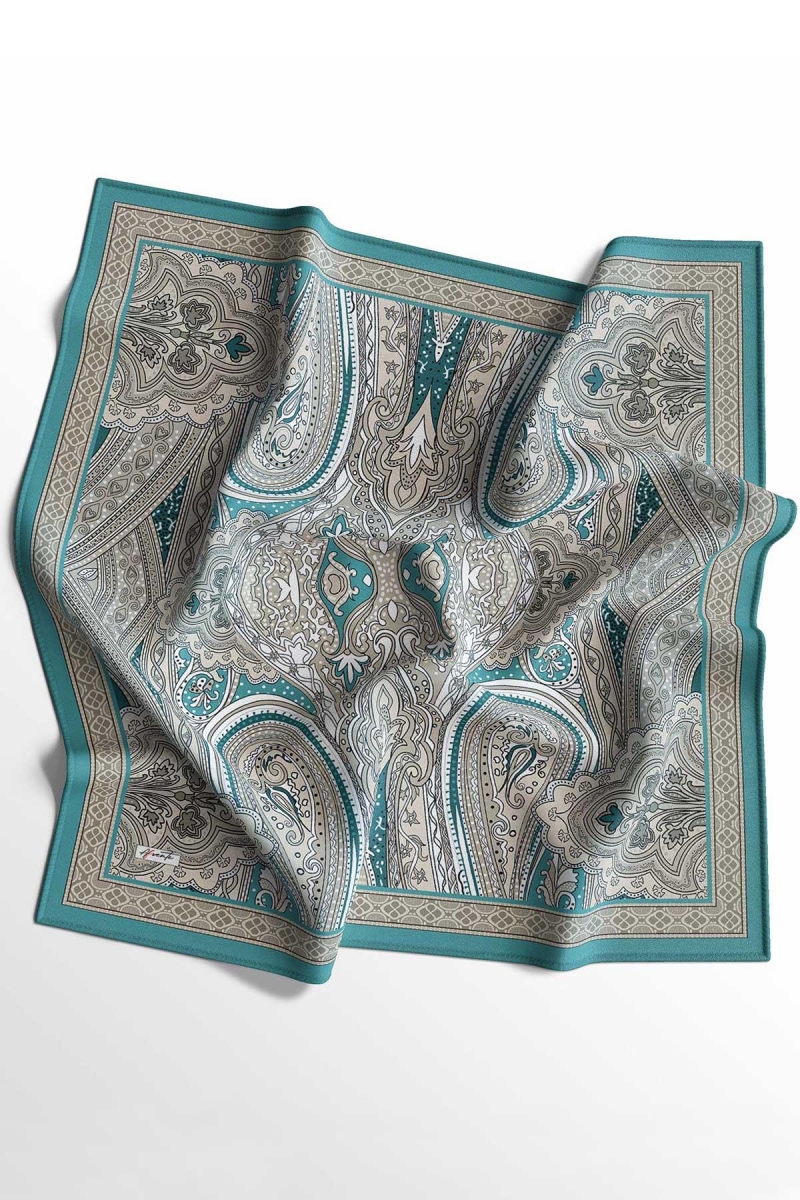 Soft Etro Eşarp Mint;Ölçü:95x95;Kumaş:%50 Pamuk %50 Polyester;Dört mevsim kullanıma uygundur.;Kolayca şekil alır, önü tok ve dik durur.; Solmaya ve kırışmaya dayanıklıdır.; İç göstermez,kayma yapmaz.; Ütü gerektirmez.;Kullanılan ışıklardan dolayı renk farklılıkları olabilir.
