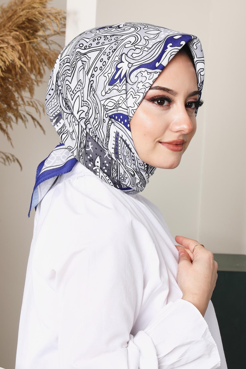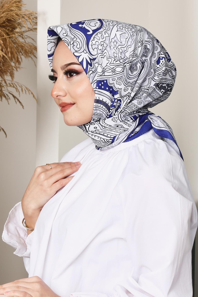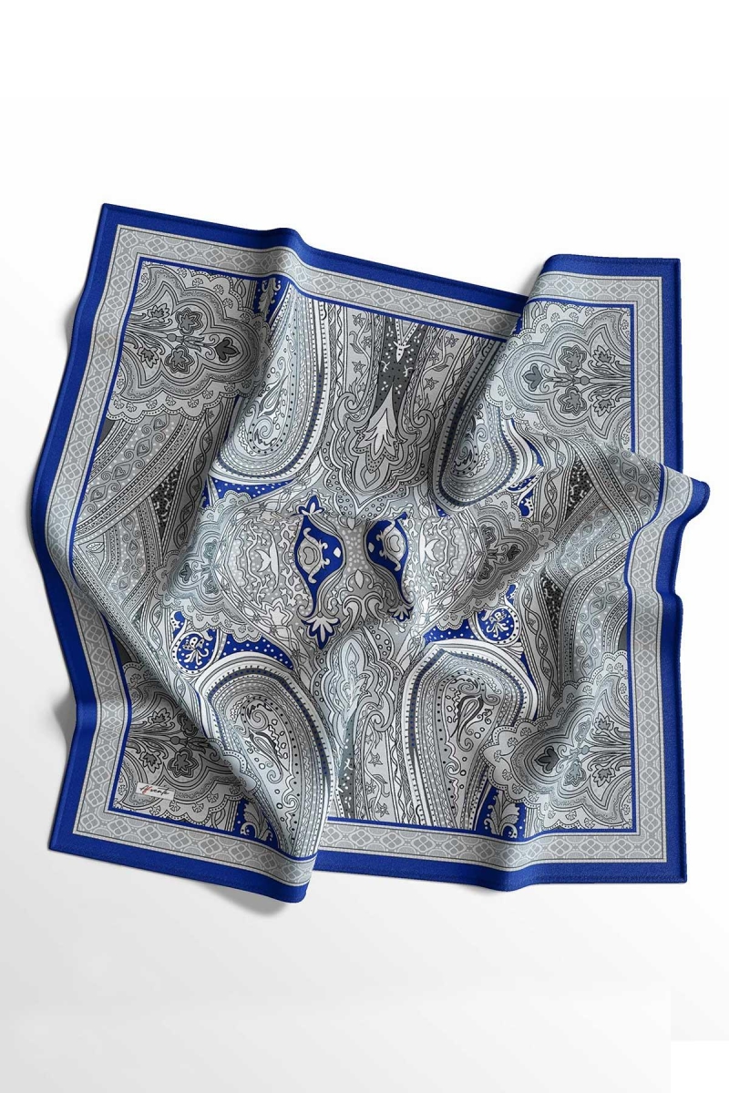 Soft Etro Eşarp Saks;Ölçü:95x95;Kumaş:%50 Pamuk %50 Polyester;Dört mevsim kullanıma uygundur.;Kolayca şekil alır, önü tok ve dik durur.; Solmaya ve kırışmaya dayanıklıdır.; İç göstermez,kayma yapmaz.; Ütü gerektirmez.;Kullanılan ışıklardan dolayı renk farklılıkları olabilir.
