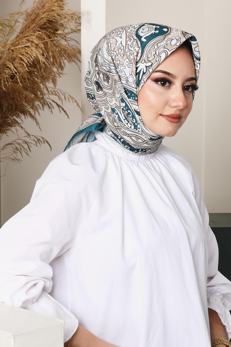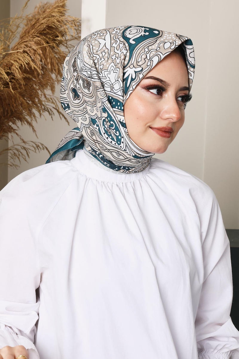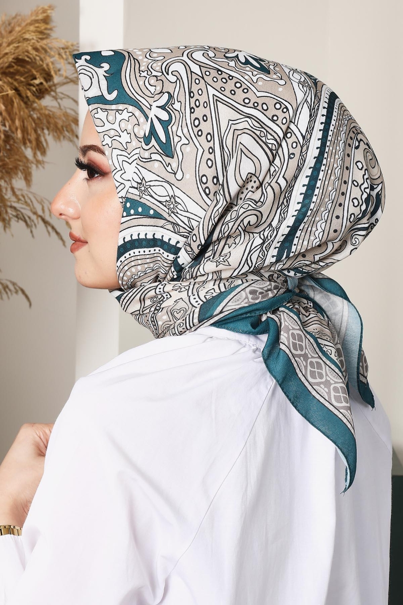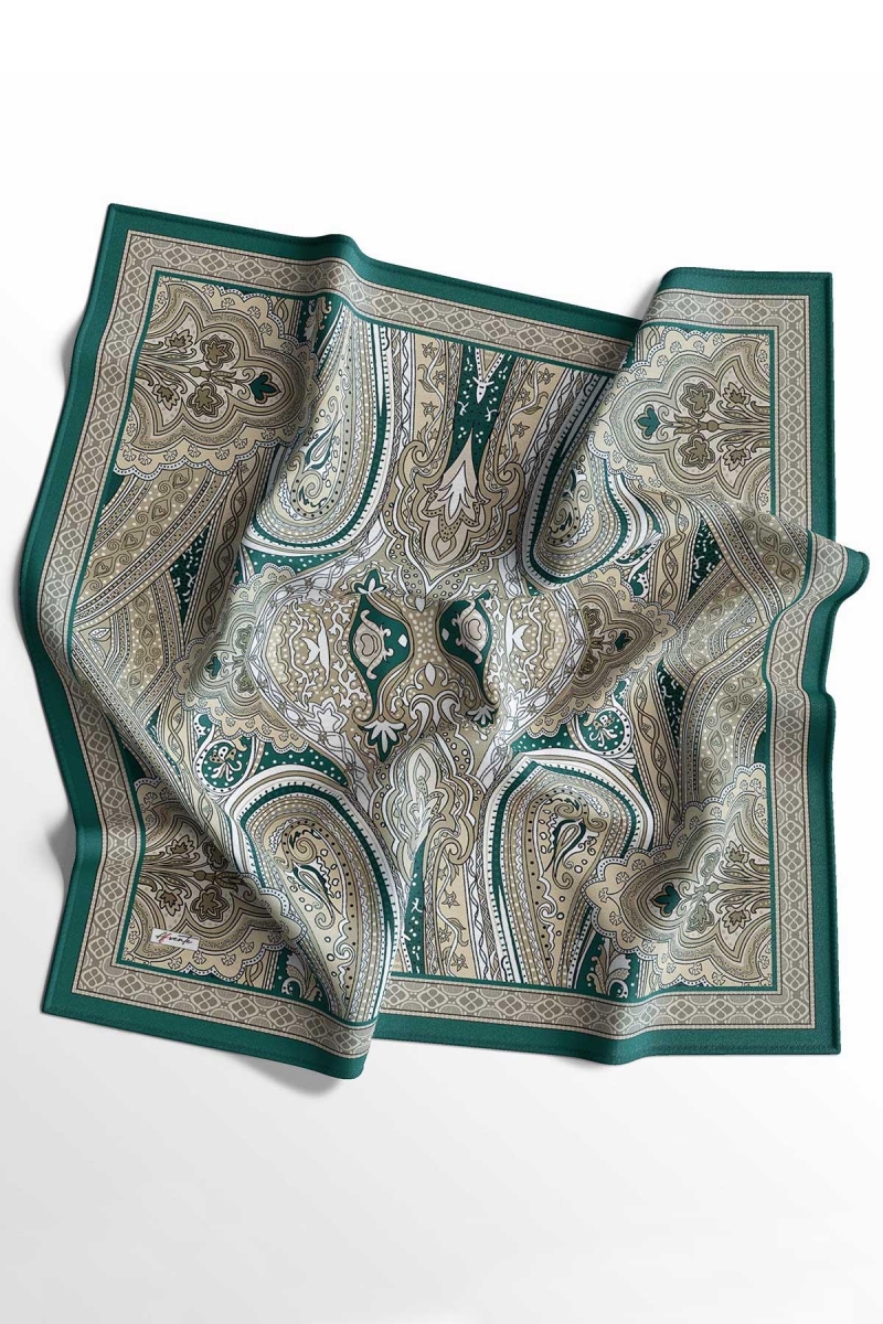 Soft Etro Eşarp Zümrüt;Ölçü:95x95;Kumaş:%50 Pamuk %50 Polyester;Dört mevsim kullanıma uygundur.;Kolayca şekil alır, önü tok ve dik durur.; Solmaya ve kırışmaya dayanıklıdır.; İç göstermez,kayma yapmaz.; Ütü gerektirmez.;Kullanılan ışıklardan dolayı renk farklılıkları olabilir.