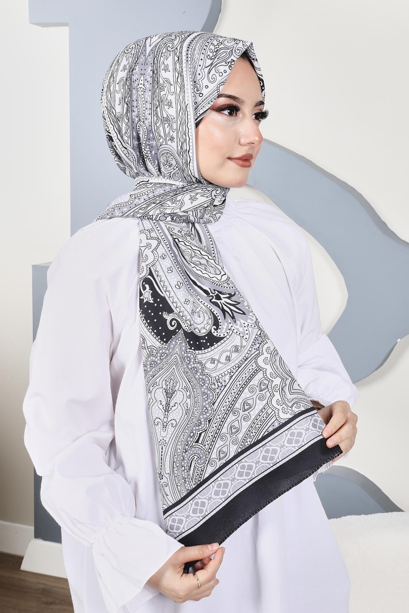 Soft Etro Şal Siyah;Ölçü:75x185;Kumaş:%50 Pamuk %50 Polyester;Dört mevsim kullanıma uygundur.;Kolayca şekil alır, önü tok ve dik durur.; Solmaya ve kırışmaya dayanıklıdır.; İç göstermez,kayma yapmaz.; Ütü gerektirmez.;Kullanılan ışıklardan dolayı renk farklılıkları olabilir.
