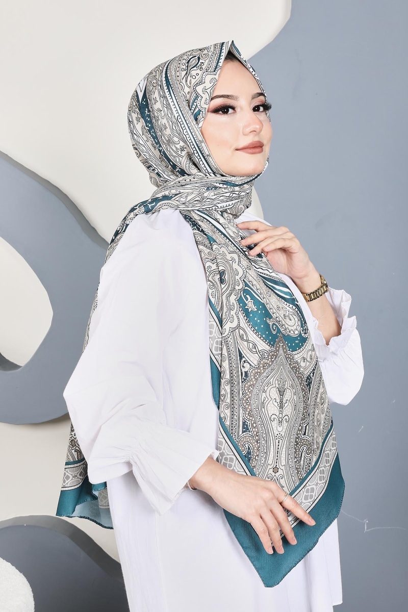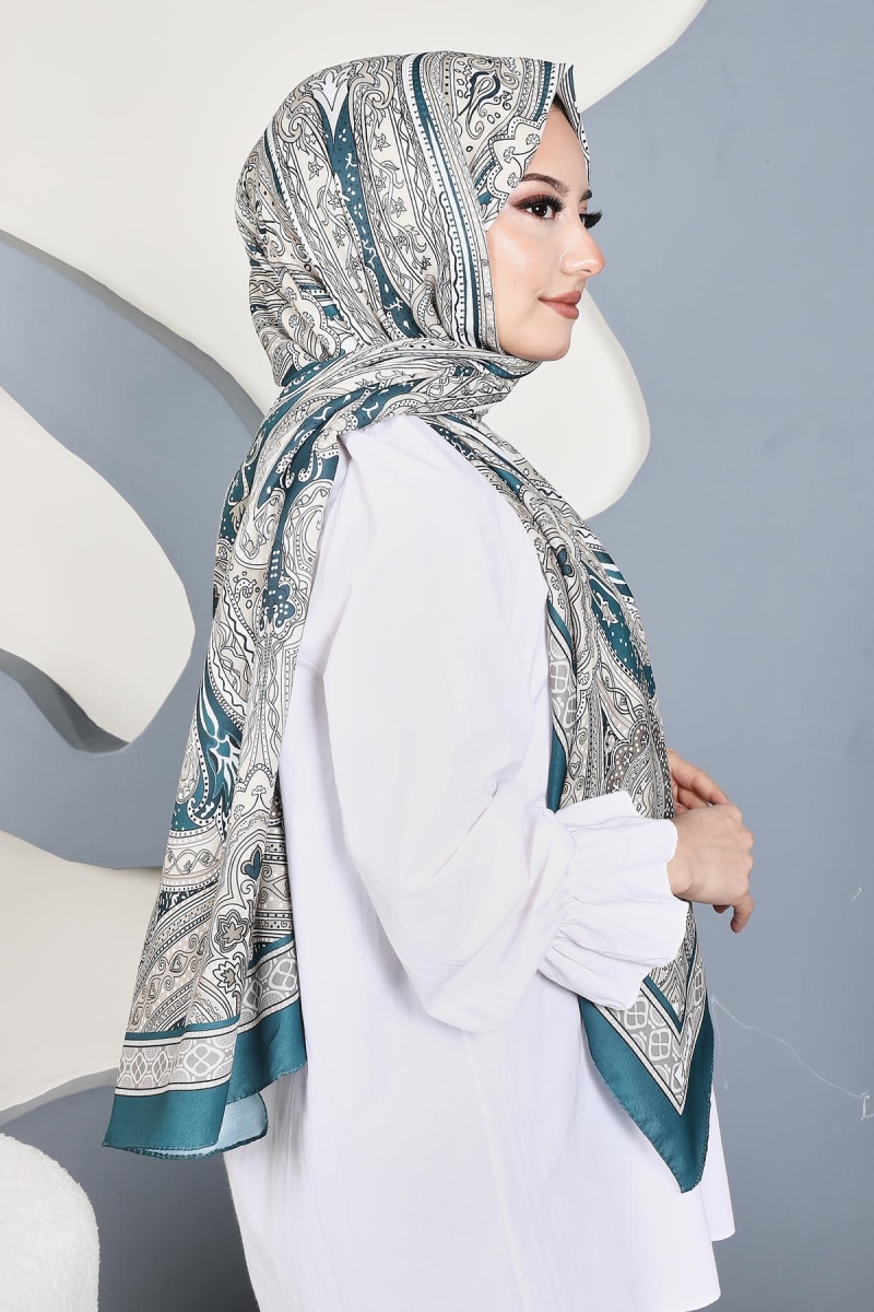 Soft Etro Şal Zümrüt;Ölçü:75x185;Kumaş:%50 Pamuk %50 Polyester;Dört mevsim kullanıma uygundur.;Kolayca şekil alır, önü tok ve dik durur.; Solmaya ve kırışmaya dayanıklıdır.; İç göstermez,kayma yapmaz.; Ütü gerektirmez.;Kullanılan ışıklardan dolayı renk farklılıkları olabilir.