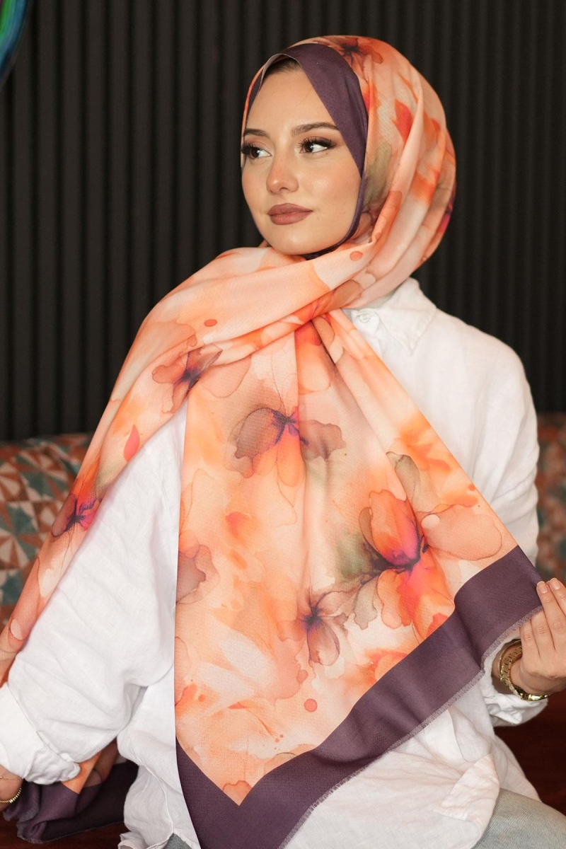 Sulu Boya Desen Turuncu Pamuk Şal;Ölçü:75x185;Kumaş:%50 Pamuk %50 Polyester;Dört mevsim kullanıma uygundur.;Kolayca şekil alır, önü tok ve dik durur.; Solmaya ve kırışmaya dayanıklıdır.; İç göstermez,kayma yapmaz.; Ütü gerektirmez.;Kullanılan ışıklardan dolayı renk farklılıkları olabilir.