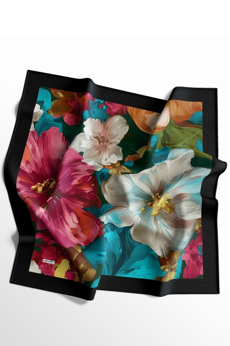 Tropikal Çiçek Desen Fuşya Pamuk Eşarp;Ölçü:95x95;Kumaş:%50 Pamuk %50 Polyester;Dört mevsim kullanıma uygundur.;Kolayca şekil alır, önü tok ve dik durur.; Solmaya ve kırışmaya dayanıklıdır.; İç göstermez,kayma yapmaz.; Ütü gerektirmez.;Kullanılan ışıklardan dolayı renk farklılıkları olabilir.Dört kenarı italyan dikişlidir.