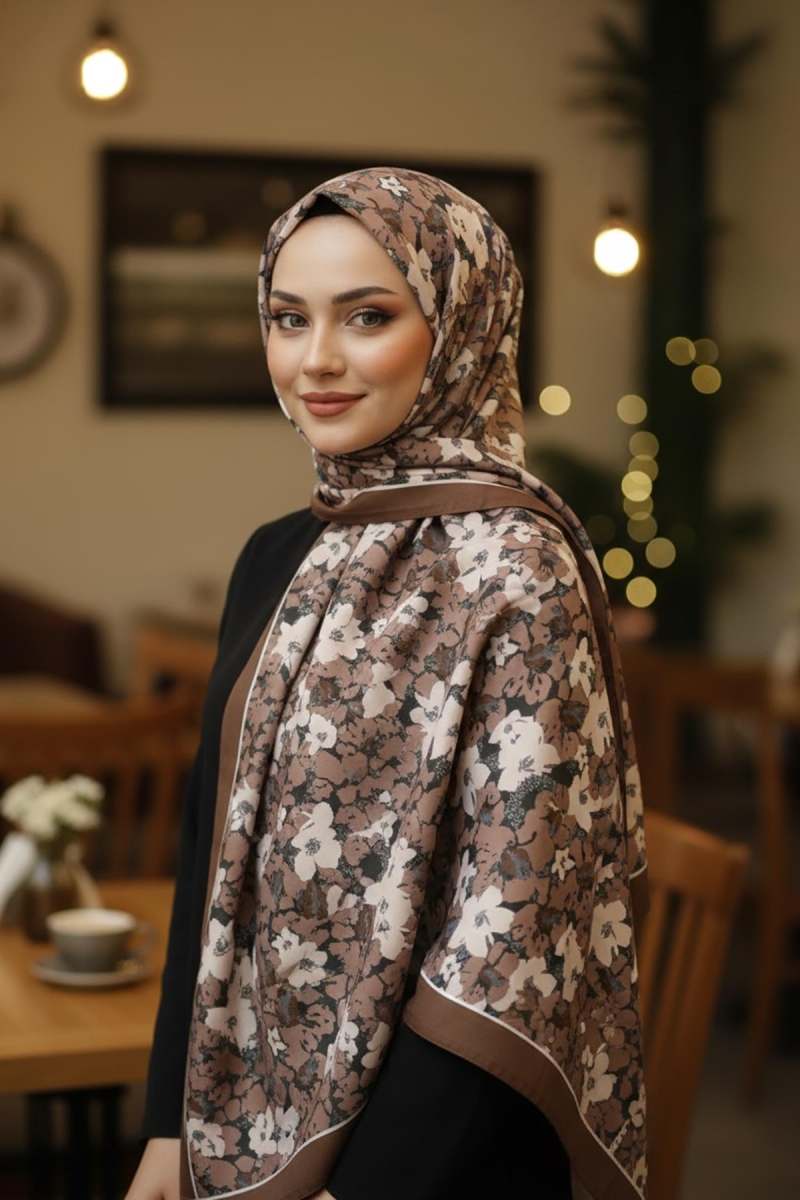 Yaprak Desen Çikolata Kahve Pamuk Şal;Ölçü:75x185;Kumaş:%50 Pamuk %50 Polyester;Dört mevsim kullanıma uygundur.;Kolayca şekil alır, önü tok ve dik durur.; Solmaya ve kırışmaya dayanıklıdır.; İç göstermez,kayma yapmaz.; Ütü gerektirmez.;Kullanılan ışıklardan dolayı renk farklılıkları olabilir.