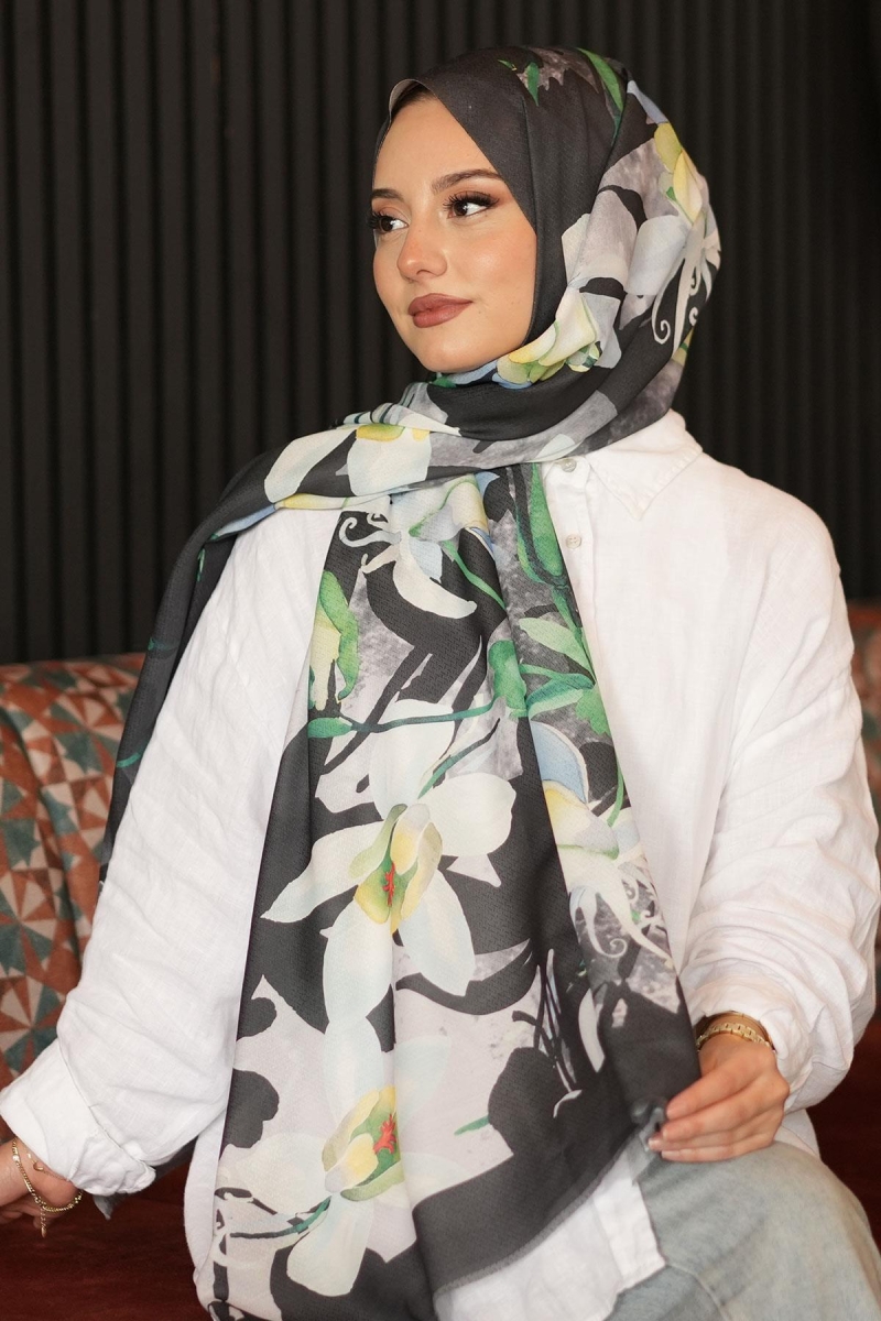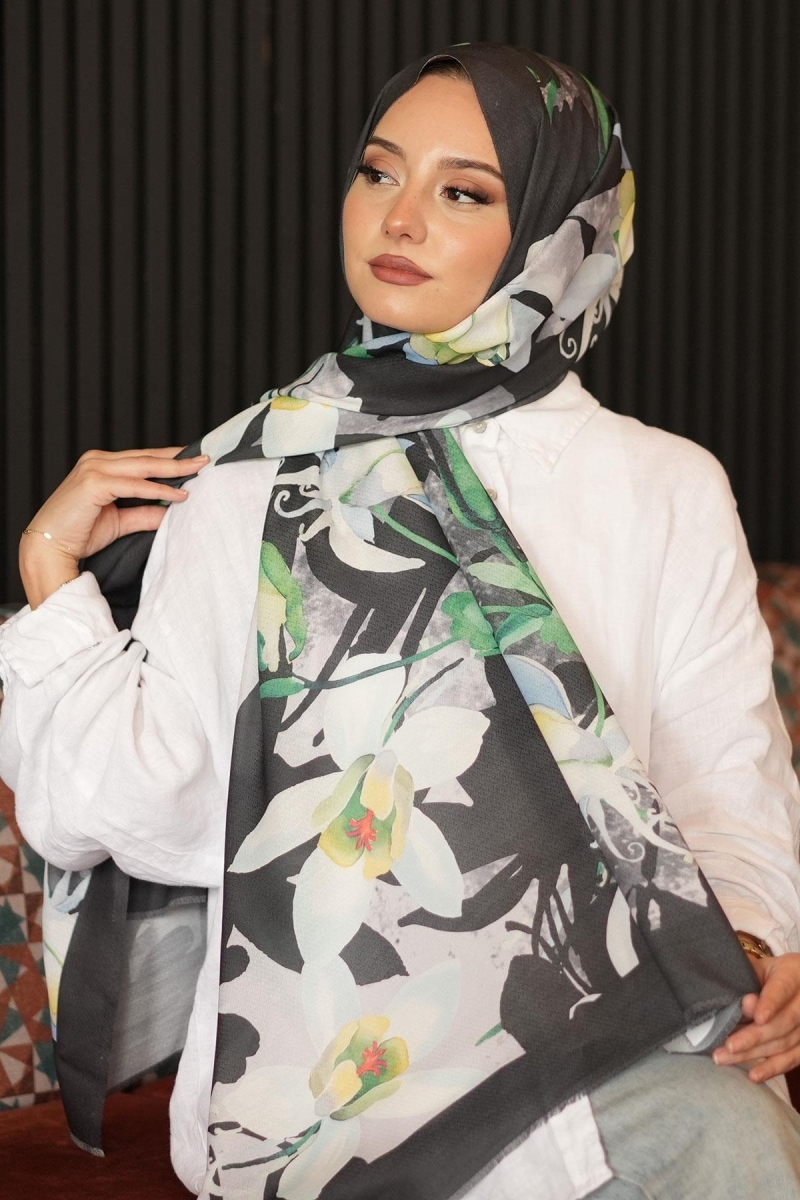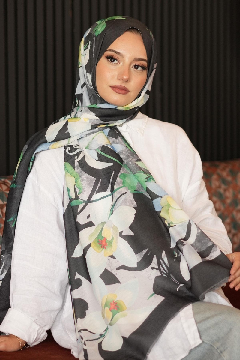 Yapraklı Çiçek Desen Yeşil Pamuk Şal;Ölçü:75x185;Kumaş:%50 Pamuk %50 Polyester;Dört mevsim kullanıma uygundur.;Kolayca şekil alır, önü tok ve dik durur.; Solmaya ve kırışmaya dayanıklıdır.; İç göstermez,kayma yapmaz.; Ütü gerektirmez.;Kullanılan ışıklardan dolayı renk farklılıkları olabilir.